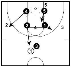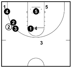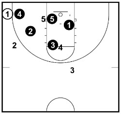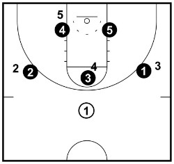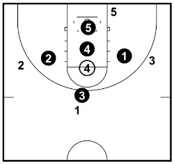 2. Fast Break – With the top player in the middle and two wings, the players are in great positions to transition into the fast break if there is a turnover. Put your point guard on a wing and put a long, athletic player that can finish at the top.