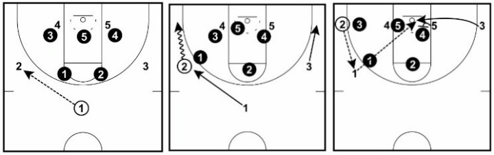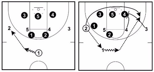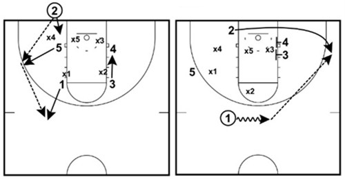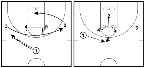 2. 1 also cuts to the top of the key in case it’s easier to use an extra pass before feeding the basketball inside the key.