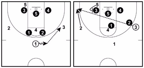 - If one of the shooters does receive the pass and takes the shot, the opposite corner must immediately sprint back on defense to prevent the fast break.