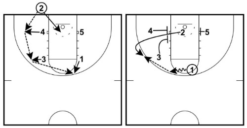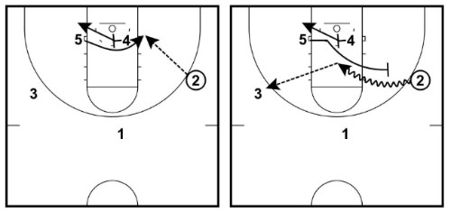 3. 2 can cut either high or low off the flex screen and looks for the pass from 4 and the easy layup.