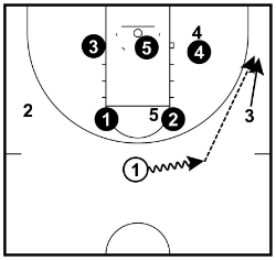 1. Pass to the offensive player at the free-throw line who will be open diving to the basket.