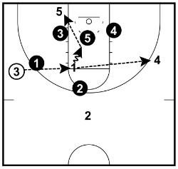 The player will also be a great scoring option after dribble penetration. When the low zone defenders step up to help on dribble penetration, a simple drop-down pass to the baseline player will often result in an easy score.