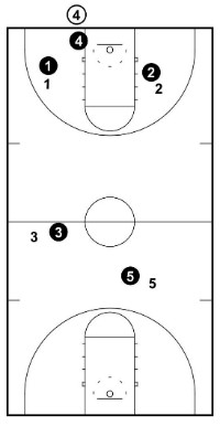 The player that pressures the in-bounds pass should be the player closest to the ring after an offensive score. This rule is in place to ensure that the basketball is pressured as quickly as possible (x4 in the diagram).