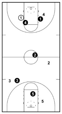 This means that the offensive team will move all offensive players into the front court except the player dribbling the basketball up the court and the player passing the basketball in.