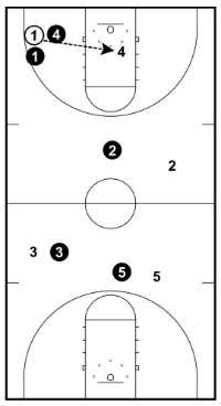 As the opposition is in-bounding the basketball, your team must have one defender pressuring the in-bounds pass, and the other four defenders should be matched up in man-to-man.