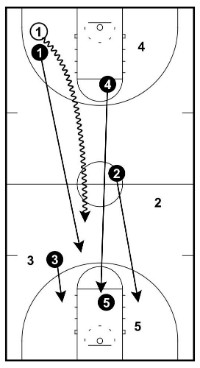 If X1 and X4 manage to get an effective trap or confuse the defense on the switch, it is the responsibility of the other three defenders to get the steal.
