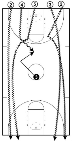 A super fun drill that forces the dribblers to keep their heads up and dodge the defenders in front of them.
