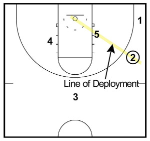 The ‘Line of Deployment’ is the straight line between the trigger, low post player, and the basket.