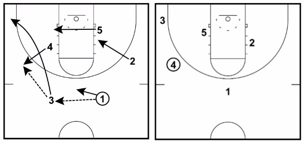 It involves 1 reversing the basketball to 3 and then 4 stepping out and receiving the pass at the trigger spot.